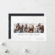Envie saudações a Chanucá em estilo chic com esses cartões elegantes e modernos de colagem de fotos, com três fotos quadradas alinhadas lado a lado e adornadas com embelezamentos desenhados por linhas no topo e no fundo. "Wishing You Love and Light" aparece abaixo em letras modernas, com o seu "Happy Hanukkah" e o seu nome de família no canto inferior direito. O ano está bem preso na design para um toque memorável. Um estilo minimalista em cores de tendência para suas saudações de Hanukkah 2021.