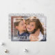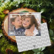 Design simples que parece excelente com a sua foto, apresenta um quadro de borda branca com pequenos pinheiros brancos e texto branco que lê Vamos Ser Jolly com uma área que você pode adicionar facilmente seus nomes. As costas são cinzas leves com muitos pinheiros brancos design. Fotografia © Storytree Studios, Stanford, CA