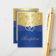 Este cartão real azul e dourado de cercado floral corresponde ao convite de casamento e a outros itens mostrados abaixo. Você também pode personalizá-lo para ser um mapa e/ou um cartão de instruções.