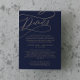 Esta carta de detalhes de caligrafia romântica é perfeita para um casamento simples. O clássico moderno design apresenta espirais de rico e turbilhões brancos com belíssima e elegante tipografia de folha de ouro de champanhe com letra falsa. Nota: Este design não apresenta folha de ouro real. É um gráfico de alta qualidade feito para se parecer com folhas de ouro.
