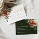 Cartão de Detalhes de Casamento de Feriado de Inverno Floral de Natal Dourado Vermelho de Boho Verde. Cartão de Buquê de Estilo Boêmiano com Berry Floral Vermelho Elegante e Simples Boho Vermelho e Botânica Pinheira em Aquarela Impressa Manuscrita. A cor de fundo verde é linda para casamentos de vassoura e casamentos de Natal. Cartão de Detalhes Simples e Imprimível para feriados e casamentos no inverno.