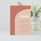 Minimalista, porém impressionante: adote este design tipográfico ligeiramente retrorreflector para a sua papelaria de casamento, com um design de arco moderno e terracotta e cores laranja queimadas. Texto, cores e fundo totalmente personalizáveis.