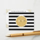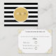 Placa rsvp preta e branca com um círculo dourado no meio para um evento preto e branco.