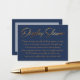 O ponto focal deste cartão sutil são palavras e frases-chave em uma fonte elegante, inclinada e elegante, adicionadas como sobreposições gráficas. As palavras "Display Shower" na frente e "Para:" e "De:" no verso renderizadas neste script também foram adornadas com um efeito de folha de ouro falso liso e glamoroso para adicionar à vibe comemorativa. Um campo de modelo foi configurado para oferecer instruções para convidados que não embrulham seu presente, em uma cor dourada correspondente. Por favor, sinta-se à vontade para alterar a redação da maneira que desejar. Existem muitas alternativas populares para este texto, se você desejar uma mudança. O fundo foi definido como um azul naval editável; você também pode mudar isso para qualquer cor que preferir. // 78 // Desenhado por Melody Watson para Paper Muserie.
