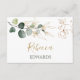 Cartão de lugar plano Elegante com ilustração da folhagem verde e dourada em estilo aquarela. Neste design, você pode remover o texto de exemplo (placa de vazio). Então você teria que escrever os nomes individuais manualmente.
