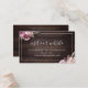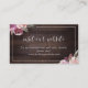 Design floral botânico de aquarela em roxo mauve, amoreira, rosa poeirento e cor de pêssego em fundo de madeira de celeiro escuro, com modernos roteiros e nomes de casais no verso, elegantes e na moda, o site de casamento excelente insere cartões para casamento de botânica no outono e no inverno. Veja todas as peças correspondentes na coleção.