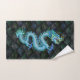 Esta toalha tem um dragão detalhado nas máscaras de azul, de roxo e de verde em um fundo de escalas esmeraldas e azuis do dragão. Uma grande toalha a secar fora após uma raça de barco do dragão.