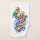 Esta toalha tem um dragão detalhado nas máscaras do ouro, verde, vermelho e o azul cercado perto espirra da água azul. Você pode mudar a cor do fundo para combinar a cor da sua equipe incorporando as opções do personalizamento. Uma grande toalha a secar fora após uma raça de barco do dragão.