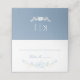 Placa para a Coleção Azul Floral Wreath. A design evoca um sentido de primavera e novos começos com suas matizes pastéis. A aquarela azul floresce, vinha e as folhas enquadram o texto em um fundo branco. Pelo contrário, a parte de trás do cartão é um azul profundo e empoeirado. Experimente este design nas opções de papel elegantes, como linho ou pérola. O papel maleável vai melhorar a delicadeza das flores. Perfeito para um casamento no jardim ou na primavera.