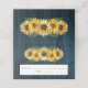 Avise aos convidados onde eles estarão sentados com um cartão de recepção de casamento Rustic Blue Sunflower. A placa de lugar design apresenta um fundo de madeira rústico com um buquê elegante de girassóis. Material adicional disponível com esta design também.