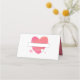 Este design apresenta um coração de aquarela rústica. A tipografia negra e o coração vermelho/laranja contrastam um com o outro. O coração pintado pela mão exibe pedaços de tinta aquosa que epitomizam paixão. O lado inverso mostra o coração cômodo com a noiva, os nomes do noivo e a data do casamento. Uma design romântica simples com um toque rústico. Esta design é ideal para qualquer tema de casamento. O perfeito design do lugar de casamento da temporada inteira. Os convites de casamento e outros artigos de papelaria também estão disponíveis. Fácil de personalizar com seus detalhes. Escreva à mão os nomes de convidados e o número da tabela no espaço fornecido.