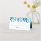 Cartão botânico de casamento/cartão de número de mesa elegante com spray e coroa de folhas de indigo e azul lacrimogêneo desenhadas para coordenar com nossa coleção de casamento Indigo Leaves. Adicione suas iniciais e data de casamento à parte de trás dos cartões de lugar para um olhar personalizado.