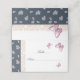 Cartão de lugar floral romeno azul-marinho e borboletas rosa