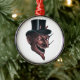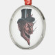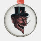 Um velho palito sorridente (o diabo), em um chapéu de cima com bigode e sorriso de um milhão de dólares; detalhes de um poster vintage
