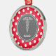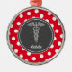 O doutor Médico Elegante Ornamento faz uma grande ideia do presente para doutores, médicos da enfermeira, enfermeiras ou qualquer com uma carreira na medicina. Símbolo à moda do caduceus e fundo vermelho e branco das bolinhas com centro do cinza de ardósia e luz - caduceus cinzento. É personalizada com nome e design a parte dianteira do ornamento.