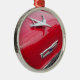 Pintura lustrosa vermelha do fundo neste carro clássico com um ornamento aero da capa do estilo que seja cromo da hortelã