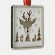 Este ornamento faz um presente de excelente ou adição à sua árvore. Esta rena aquosa é cercada por presentes, flocos de neve e árvores. Um ornamento exclusivo que não é encontrado em todos os compras de varejo! Design de aquarela original criada por Night Sky Paperie. Medição de 2" x 2", com peso de apenas 1,5 oz, este ornamento metálico prateado é de cor cheio, ou seja, resistente a UV e à impermeabilização