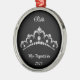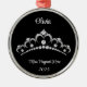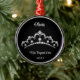 Esse ornamento da árvore é mostrado em forma redonda com um brilhante e bonito diamante tiara impressão, mostrado com fita vermelha e prateada cercada. Personalize este item com o seu nome, data e nome pessoal do participante, utilize este modelo. Imagem licenciada