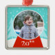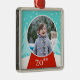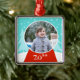 Agite-o acima desta época natalícia com este ornamento customizável da foto do feriado do globo da neve! As características de design um globo da neve que senta-se em uma cena tão perfeita geralmente vê-se somente em um globo da neve. O globo tem uma base vermelha e uma bola prontas para sua foto favorita. Substitua simplesmente a foto do modelo com você para possuir. Polvilhar claro dos flocos de neve derivará através de sua foto, dando a ilusão de um globo real da neve. A base do globo da neve está pronta para que você personalize-o com o ano ou sua mensagem especial do feriado. Este globo kitschy da neve está sentando-se em uma cama macia da neve fresca, contra um fundo do céu do aqua. As silhuetas da luz - azul, as árvores de cedro minimalistas são visíveis e claras - neve azul estão caindo do céu. Estas etiquetas são tão bonito, você quererá usá-las até 4o julho. Estúdios de Storytree do © da fotografia, Stanford, CA