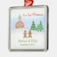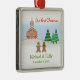 Uns enfeites de natal por seu primeiro ano como o marido e a esposa que caracterizam uma cena da neve completa com os noivos do pão-de-espécie na frente da igreja da casa de pão-de-espécie aonde apenas se casaram! A jarda coberto de neve, as árvores verdes, e a árvore de Natal terminam a cena. Personailze o texto.