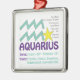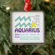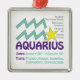 Este ornamento dos traços do Aquário faz um presente de aniversário perfeito para todo o Aquário. O Aquário é o décimo primeiro sinal do zodíaco e inclui todo o nascer dos indivíduos desde o 20 de janeiro - 18 de fevereiro. O símbolo do Aquário é o portador da água. Os traços da personalidade do Aquário são amigáveis, honestos, inventivos, independentes e imprevisíveis. O Aquário Birthstone é Amethyst e o planeta do Ruling do Aquário é Uranus