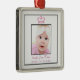 Foto cor-de-rosa e prata branca fotografa princesa rosa, coroa, bebê bebê nascida anúncio de primeira ornamentação de Natal.