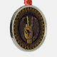"Abençoados são os pacificadores, pois eles serão chamados de filhos de Deus." Imaginem paz prolongada e mundial. Conseguem imaginar o que poderia ser realizado se toda a energia, recursos e força de vida destruídos pela guerra fossem utilizados na educação, nas infraestruturas, na medicina - se as despesas militares/de defesa das nações fossem desnecessárias? Incorporei o imediatamente identificável "Símbolo da Paz" da era Hippie com o globo como medalhão de bronze ou prêmio para promover a paz.