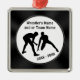 Os ornamento personalizados preto e branco da luta ou mudam as CORES do texto e do fundo a suas CORES dos presentes da equipe de luta. Desenhista Linda da CHAMADA: 239-949-9090 PARA MUDAR as CORES, o design ou o produto. Presentes personalizados excelente da luta para meninos. O desenhista Linda pode MUDAR a imagem impressa preto do quadro da luta e as cores dos lutadores.