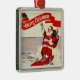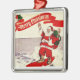 Estes enfeites de natal snazzy caracterizam uma ilustração do vintage de Papai Noel em uma prancha. O ornamento perfeito do divertimento para fãs de papai noel e de todas as coisas retros!