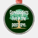 Este ornamento engraçado da árvore genealógica caracteriza uma árvore em um fundo verde escuro e o subtítulo "Genealogists vive na pista passada." O design é somente sobre a face frontal do ornamento. Também disponível em outras formas e como ornamento cerâmicos com impressão em ambos os lados. Este ornamento olharia o excelente que pendura de sua árvore de Natal, de seu espelho retrovisor, ou como uma tração do fã de teto. Faz um grande stuffer do presente ou da meia para um genealogist que procurara por antepassados em sua árvore genealógica.