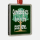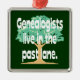 Este ornamento engraçado da árvore genealógica caracteriza uma árvore em um fundo verde escuro e o subtítulo "Genealogists vive na pista passada." O design é somente sobre a face frontal do ornamento. Também disponível em outras formas e como ornamento cerâmicos com impressão em ambos os lados. Este ornamento olharia o excelente que pendura de sua árvore de Natal, de seu espelho retrovisor, ou como uma tração do fã de teto. Faz um grande stuffer do presente ou da meia para um genealogist que procurara por antepassados em sua árvore genealógica.