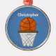 Este ornamento azul do basquetebol faz uma lembrança maravilhosa para o Natal 2017. Personalize facilmente com sua informação! Clique "PERSONALIZAM-NO" botão para mudar a cor do fundo, o estilo de pia batismal, a cor, o tamanho e a posição. Ilustração por www.sanqunettidesign.com