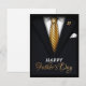 Este cartão do Dia dos Pais exala sofisticação e apreço pelo homem notável na sua vida. O cartão apresenta uma imagem nítida de um terno preto bem cortado, completo com uma gravata dourada luxuosa. O centro é uma mensagem sincera em texto dourado brilhante que diz "Feliz Dia dos Pais."