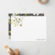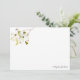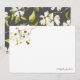 Cartões para papelaria pessoal de floral de aquarela apresentam delicadas cores aquáticas floradas de cereja branca em tons de branco, marfim, bege, azeitona e verde e podem ser personalizados com seu nome ou outra frase curta (como o obrigado). Cartões de nota revertem para um padrão coordenado de floração de cereja branca em um fundo de cinza de carvão. Estão incluídos envelopes brancos simples.