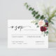 Cartão RSVP de Casamento de Blush Boho Burgundy. Este Cartão é caracterizado por rosas e flores boho burgundy e blush com duas fontes modernas de alta classe que moldam as tendências dos eventos festivos atuais e futuros.