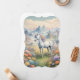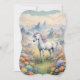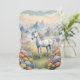 Um cartão com um vazio lateral para a sua mensagem. Um cartão de nota mostrando uma imagem sonhadora de um unicórnio branco com um mané arco-íris em um campo de flores. Ao fundo estão montanhas majestosas. O presente perfeito para dar àqueles que amam unicórnios mágicos e místicos. Contém conteúdo generativo.