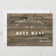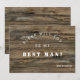 Cartão de proposta moderno e rústico "Best Man" com fundo de madeira e utilização de tipografia moderna de blocos. Capacidade de alterar todas as seções de texto de acordo com as suas necessidades.