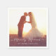 Seus amigos e família amarão estes simples, guardanapo de papel personalizados contemporâneo "alegre casados" do feriado da foto do Natal do roteiro da escrita como a decoração da mesa para sua primeira festa natalícia do newlywed. Elke Clarke© disponível em www.zazzle.com/monogramgallery