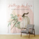 Crie o momento perfeito para uma foto com esse Tapete de Fundo para Fotos de Chás de Bebê "Falling in Love". Com uma abóbora branca pintada à mão em aquarela, rosas cor de blush suave, folhagens de eucalipto, grama pampas e penas inspiradas no estilo boho, tudo organizado em um arco cor-de-rosa com o texto "Falling In Love" em laranja terracota e texto personalizável abaixo. Ideal para um chá de bebê de menina, esse grande fundo de outono combina perfeitamente com a linha de produtos "Falling in Love" da Porch and Gable Design, adicionando um toque elegante, rústico e boho-chic à sua celebração. Perfeito para fotos, festas e memórias inesquecíveis do chá de bebê.
