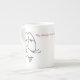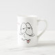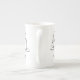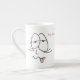 As caras dos desenhos animados de uma pessoa esgotada em ambos os lados da porcelana de osso agridem com "minha caneca sonolento do chá do tempo" escrita no centro. As palavras podem ser mudadas a qualquer coisa que você prefere.