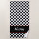 Uma toalha de praia bolinhas, preto e branco, monograma, faz um presente personalizável. Para personalizar o presente de casamento para recém-casados, modifique a cor de preenchimento e o nome. Ajustes adicionais são para alterar a fonte, a cor da fonte ou o tamanho da fonte. Por favor, lembre-se de ajustar a cor da forma também. Para obter ajuda sobre a personalização de cores e design, entre em contato com https://t.me/KBMD3signs_chat.