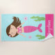 Esta toalha monográfica personalizada de praia de sereia apresenta uma doce sereia de rosa. Ela tem cabelos castanhos e cinzas e natações sob o mar com seus amigos de peixe-estrela rosa. Esta toalha pode ser personalizada com um nome. A cor da fonte e da fonte pode ser personalizada.