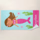 Esta toalha monográfica personalizada de praia de sereia apresenta uma doce sereia de rosa. Ela tem cabelos castanhos-claros e cinzas e natações sob o mar com seus amigos de peixe-estrela cor-de-rosa. Esta toalha pode ser personalizada com um nome. A cor da fonte e da fonte pode ser personalizada.