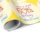 Este design de papel de empacotamento de temas de aniversário reluzente apresenta uma mensagem como "Tenha um excelente 60º aniversário, CustomName!", onde o nome e o número de aniversário podem ser personalizados. Um papel de embrulho como este pode ser usado ao embrulhar presentes para celebrar o aniversário de alguém.