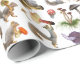 Esquilos reúnem cogumelos coloridos neste papel de embrulho divertido.