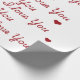 Este elegante papel de embrulho "Eu te amo" é perfeito para aniversários, casamentos, Dias de os namorados, ou qualquer hora para fazer seu ente querido se sentir especial. Apresentando um design de guião limpo, com feltro cardíaco, com corações vermelhos simples, transforma qualquer presente num gesto significativo. Impresso em papel premium com acabamento macio.