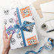O "Halloween Skulls Seamless Wrapping Paper Design" apresenta um padrão perfeito de crânios assustadores, perfeito para adicionar um toque arrepiante ao seu presente de Halloween.