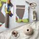 Um homem e o seu cão a brincar com um pau. Este design parece realmente eficaz nestes papéis de enrolamento