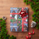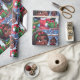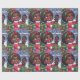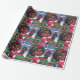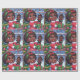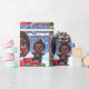 Design de papel embrulho cômico com uma menina negra animada em traje festivo, seu rosto iluminou-se com alegria enquanto ela orgulhosamente mostra sua boneca preta recém-solta. Flocos de neve e elementos festivos suavemente caídos criam um pano de fundo lúdico, capturando a magia da doação de presente durante a temporada de festas.