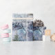 Este presente de Natal apresenta uma paisagem maravilhosa de inverno, três lobos selvagens e uma árvore de Natal. Um design artístico que criei de uma colagem original. Várias sobreposições ilustradas foram adicionadas a uma paisagem de inverno. A fotografia de fundo de árvores cobertas de neve é um original que eu capturei depois de uma nevasca. As árvores estão no meu quintal. Este presente vai se coordenar bem com uma árvore de Natal branca de inverno ou azul.